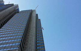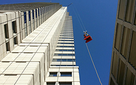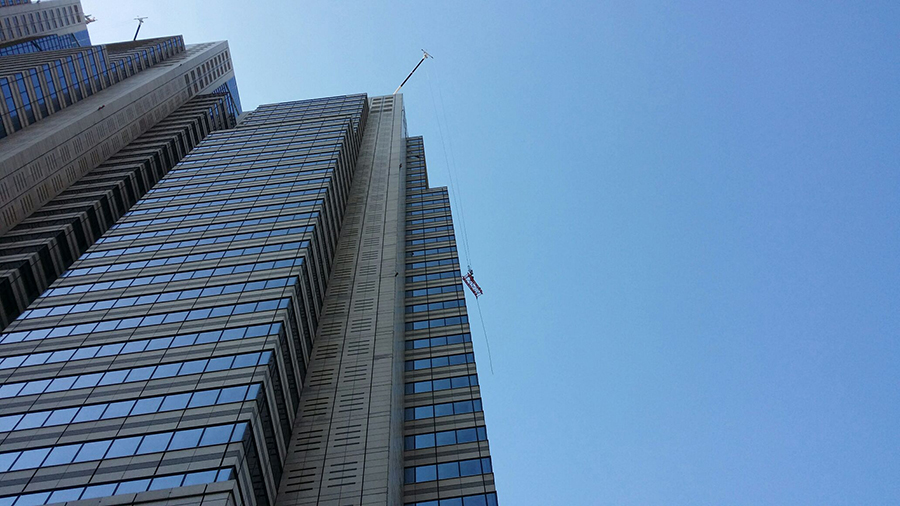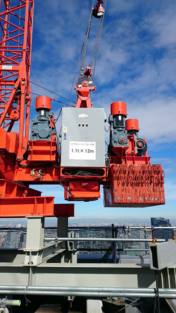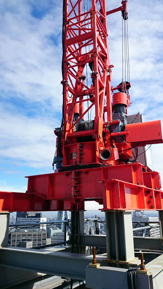 高層ビルの施工に欠かせないタワークレーンや工事用エレベーター。